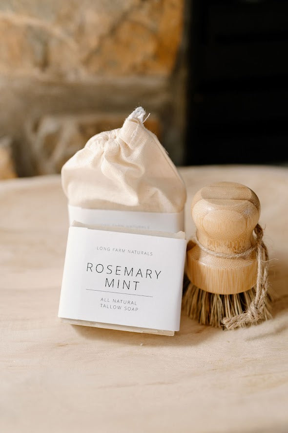 Ingredients Saponified oils of coconut, Long Farm Meats tallow, castor, shea butter; pure essential oils of Himalayan cedar, rosemary, spearmint, litsea cubeba, star anise, and clary sage; arrowroot powder, rosemary oil extract